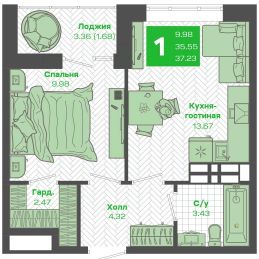 Общая площадь35,18 м²