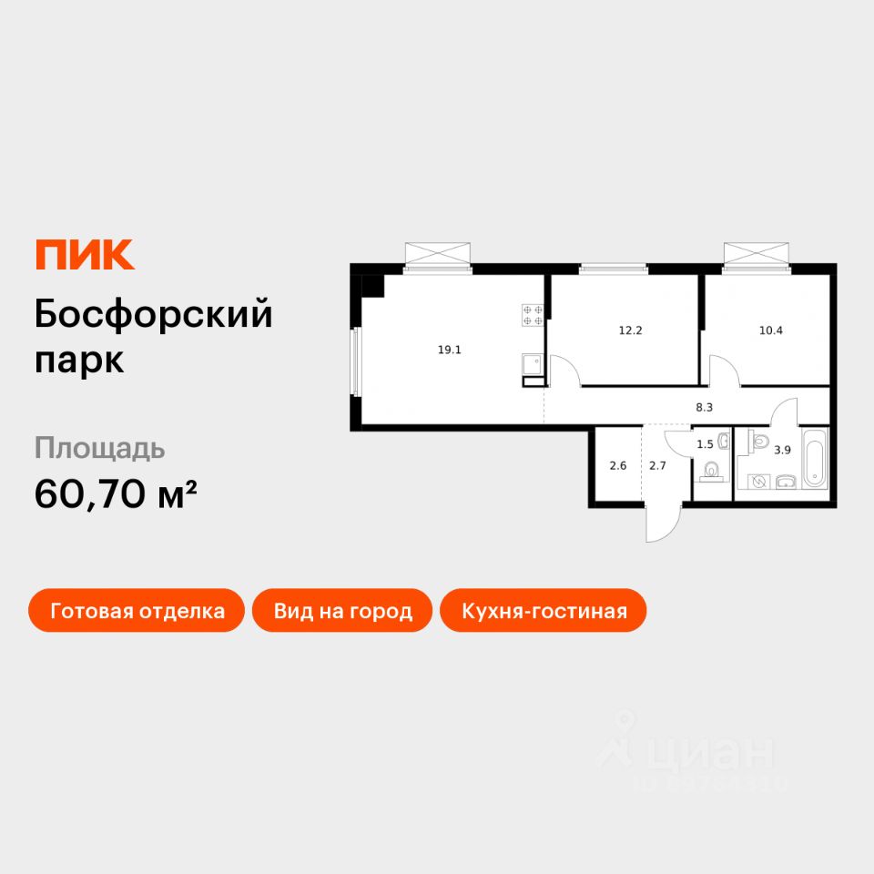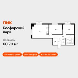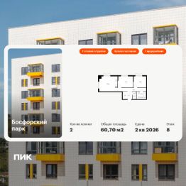 Продаётся 2-комн. квартира площадью 60,7 кв.м на 8 этаже 9 этажного дома (Корпус 4, Секция 1) проекта ПИК Босфорский парк. Светлый просторный подъезд на уровне земли, функциональная планировка, большие окна, c отделкой.