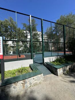 Во дворе новая спортивная площадка, две детских площадки.