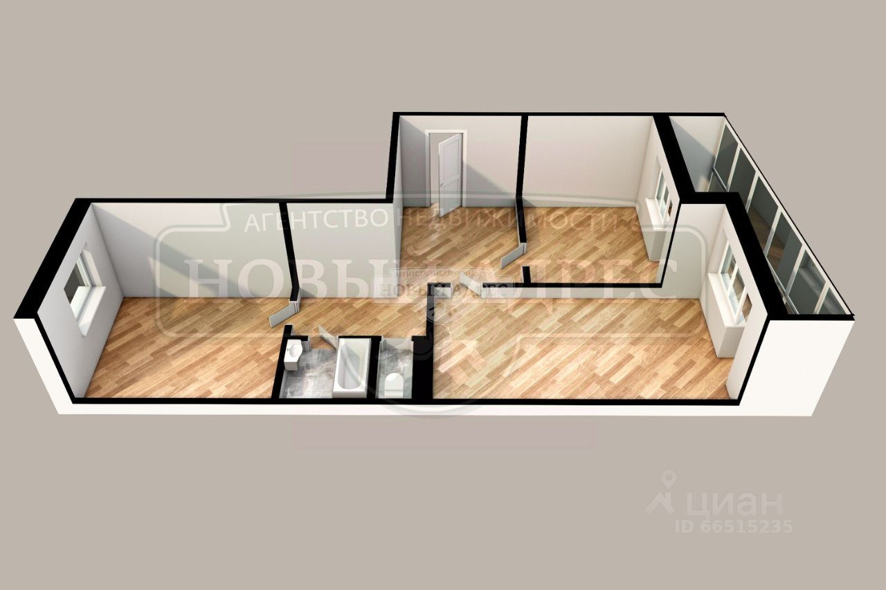 Квартира расположена на третьем этаже пятиэтажного панельного дома. Здесь вы найдёте две изолированные комнаты с общей площадью 49,8 кв. м, в том числе жилая площадь составляет 30 кв. м и кухня — 7 кв. м. Высота потолков — 2,5 м, что создаёт ощущение простора. Окна выходят на улицу и во двор, предоставляя прекрасный вид.