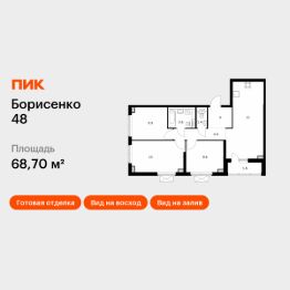 Продаётся 3-комн. квартира площадью 68,7 кв.м на 21 этаже 30 этажного дома (Корпус 4, Секция 4) проекта ПИК Борисенко 48. Светлый просторный подъезд на уровне земли, функциональная планировка, большие окна, c отделкой.