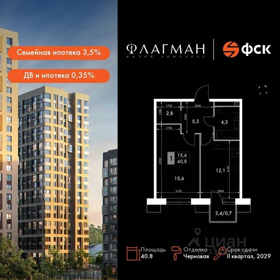Продаётся 1-к квартира номер 57 общей площадью 40.8 кв.м. на 6-м этаже 30 этажного дома. Отделка Whitebox. Цена с учётом скидки!