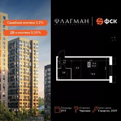 Продаётся квартира-студия номер 234 общей площадью 29.9 кв.м. на 21-м этаже 30 этажного дома. Отделка Whitebox. Цена с учётом скидки!