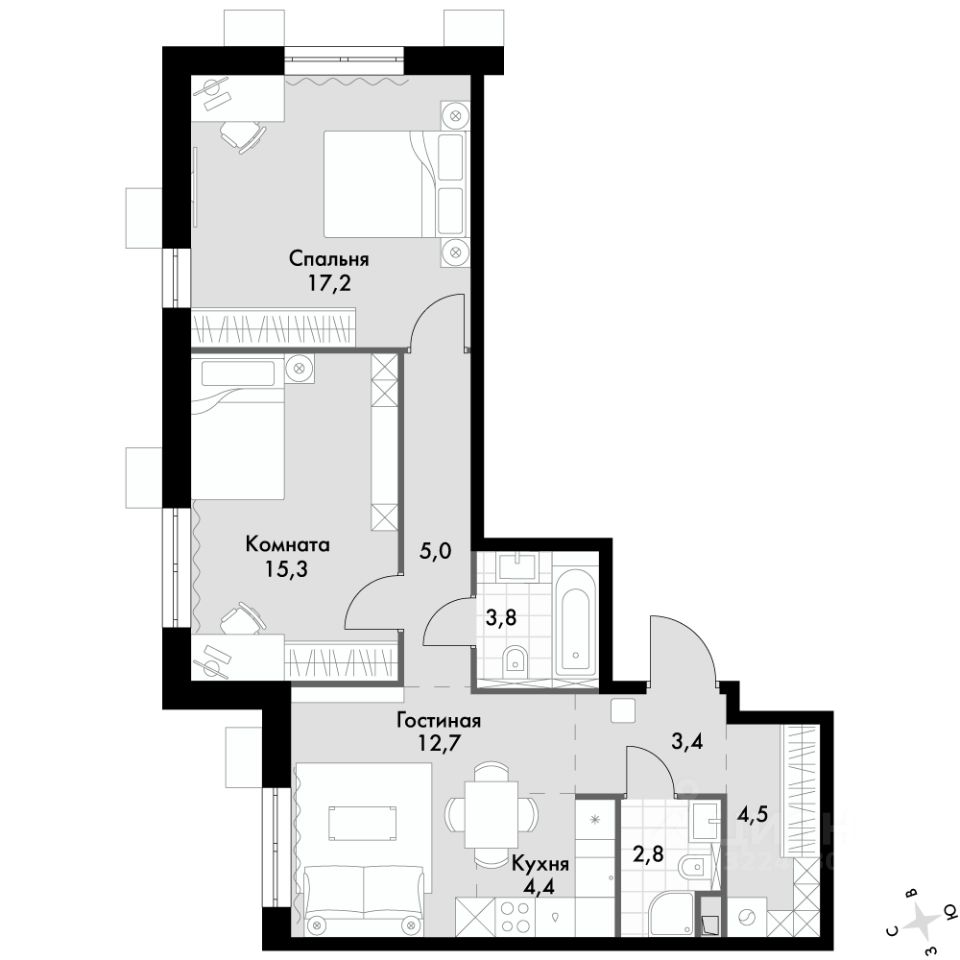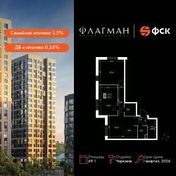 Продаётся 3-к квартира номер 254 общей площадью 69.1 кв.м. на 23-м этаже 24 этажного дома. Отделка Whitebox. Цена с учётом скидки!