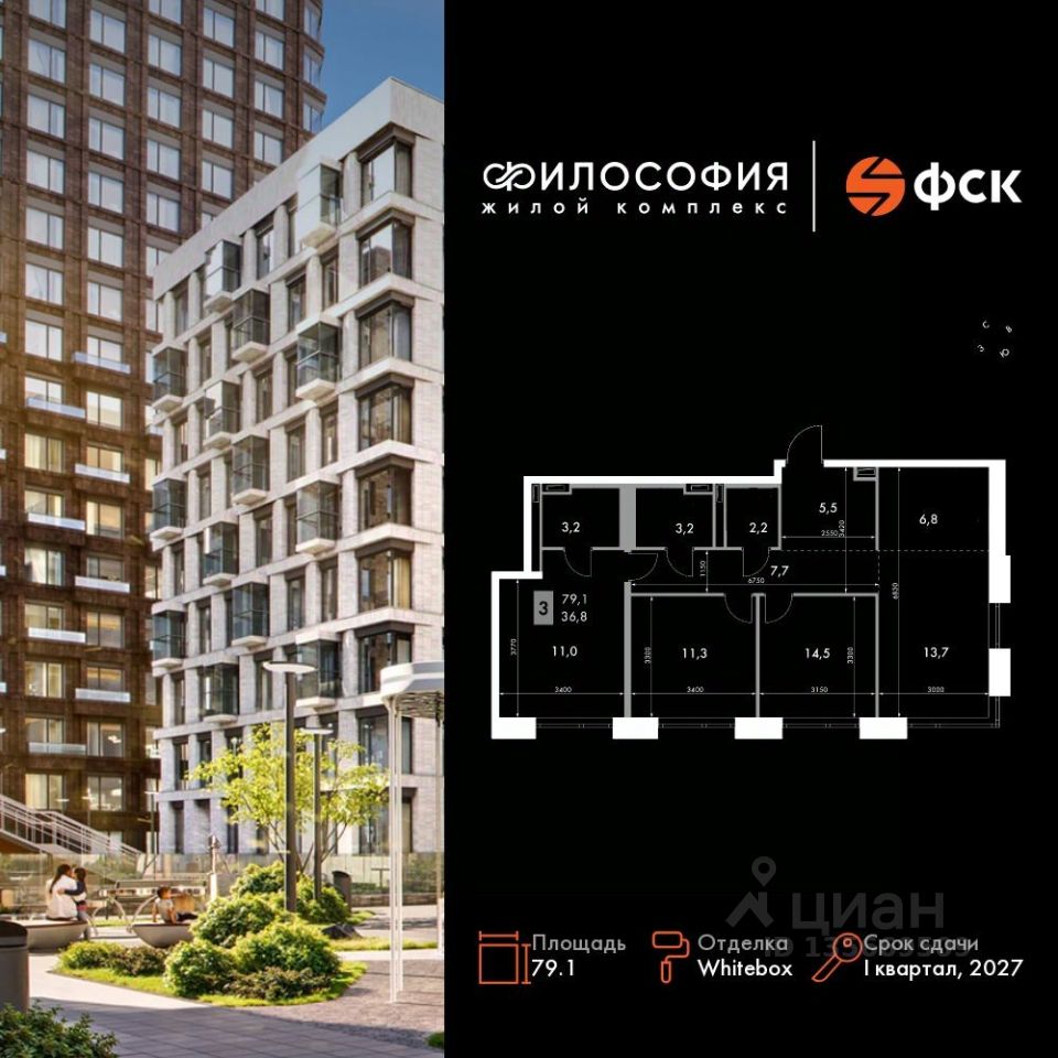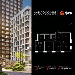 Продаётся 3-к квартира номер 404 общей площадью 79.1 кв.м. на 2-м этаже 10 этажного здания. Отделка Whitebox. Цена с учётом скидки.