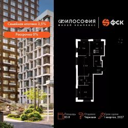 Продаётся 3-к квартира номер 417 общей площадью 85.8 кв.м. на 5-м этаже 10 этажного дома. Отделка Whitebox. Цена с учётом скидки!