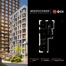 Продаётся 3-к квартира номер 417 общей площадью 85.8 кв.м. на 5-м этаже 10 этажного здания. Отделка Whitebox. Цена с учётом скидки.