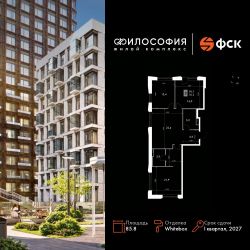 Продаётся 3-к квартира номер 413 общей площадью 85.8 кв.м. на 4-м этаже 10 этажного здания. Отделка Whitebox. Цена с учётом скидки.