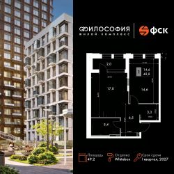 Продаётся 1-к квартира номер 172 общей площадью 49.2 кв.м. на 7-м этаже 14 этажного здания. Отделка Whitebox. Цена с учётом скидки.
