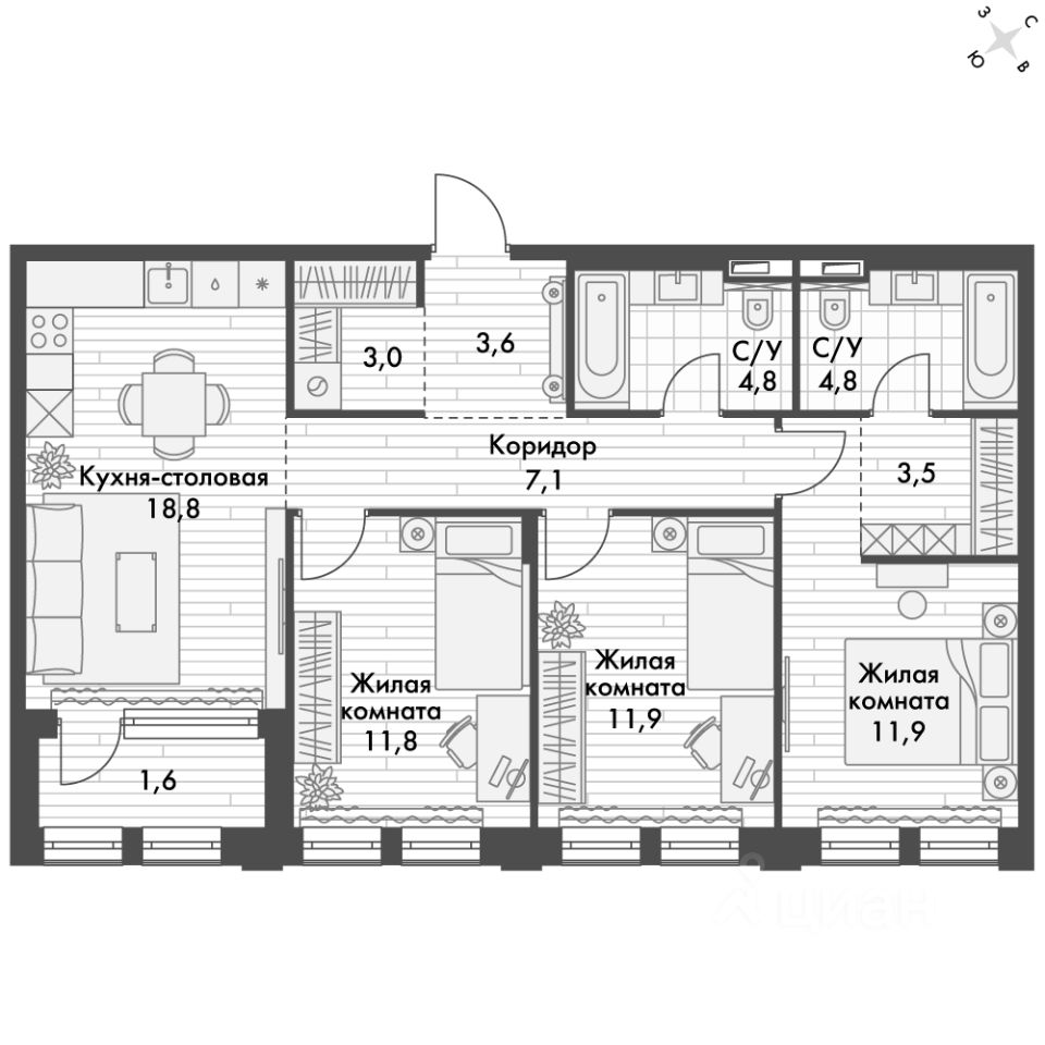 - Мастер-зона с санузлом и гардеробной. Всё для вашего комфорта и удобства, включая личный санузел и гардероб.