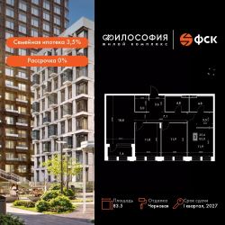 Продаётся 3-к квартира номер 179 общей площадью 83.5 кв.м. на 8-м этаже 14 этажного дома. Отделка Whitebox. Цена с учётом скидки!