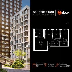Продаётся 4-к квартира номер 191 общей площадью 82.8 кв.м. на 9-м этаже 14 этажного здания. Отделка Whitebox. Цена с учётом скидки.