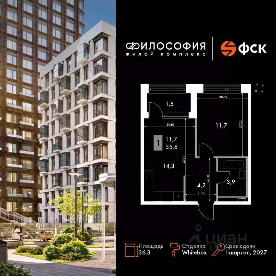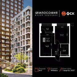 Продаётся 1-к квартира номер 126 общей площадью 36.3 кв.м. на 3-м этаже 14 этажного здания. Отделка Whitebox. Цена с учётом скидки.