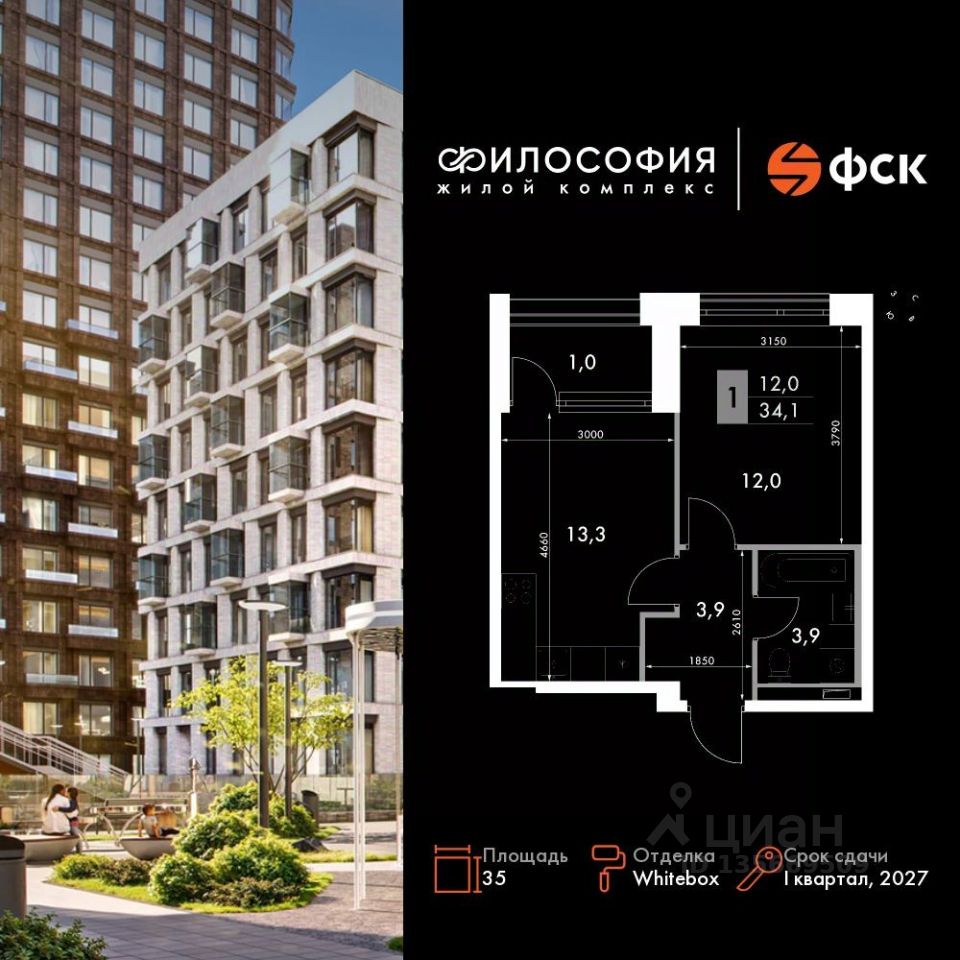 Продаётся 1-к квартира номер 145 общей площадью 35 кв.м. на 5-м этаже 14 этажного здания. Отделка Whitebox. Цена с учётом скидки.