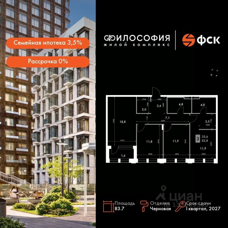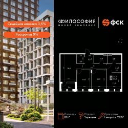 Продаётся 3-к квартира номер 149 общей площадью 83.7 кв.м. на 5-м этаже 14 этажного дома. Отделка Whitebox. Цена с учётом скидки!