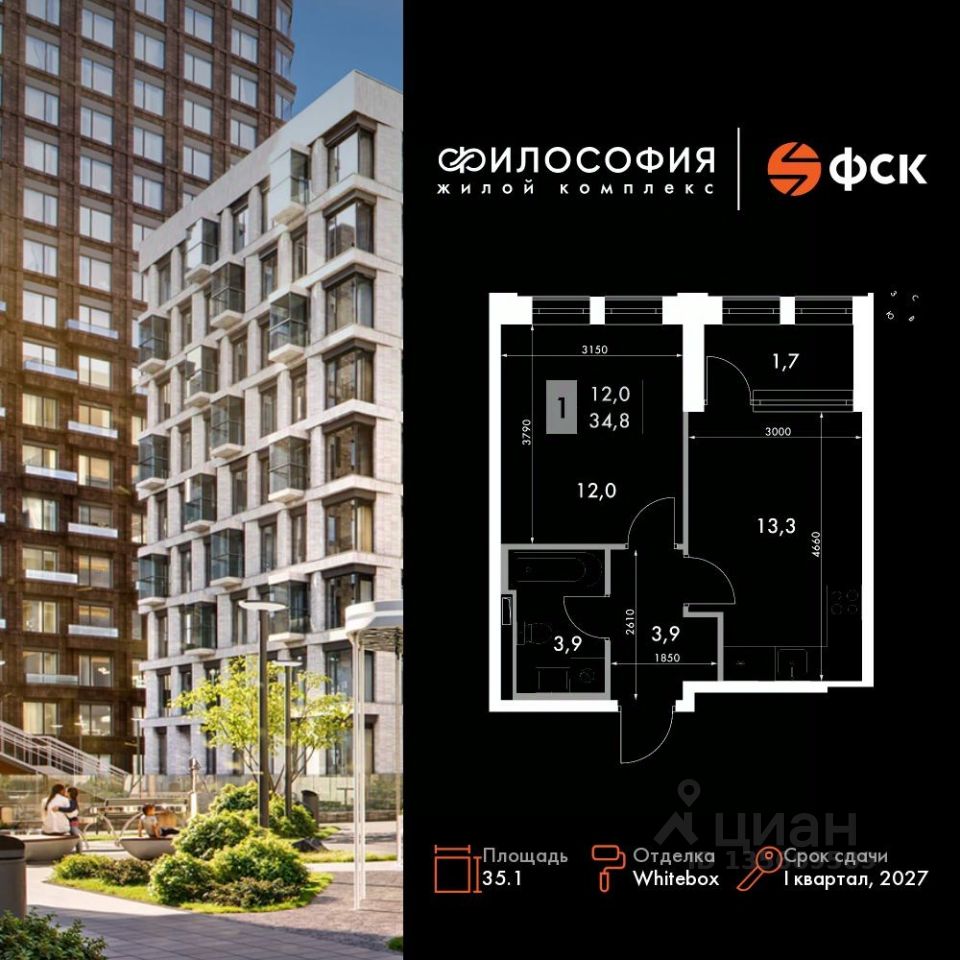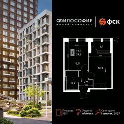 Продаётся 1-к квартира номер 164 общей площадью 35.1 кв.м. на 6-м этаже 14 этажного здания. Отделка Whitebox. Цена с учётом скидки.