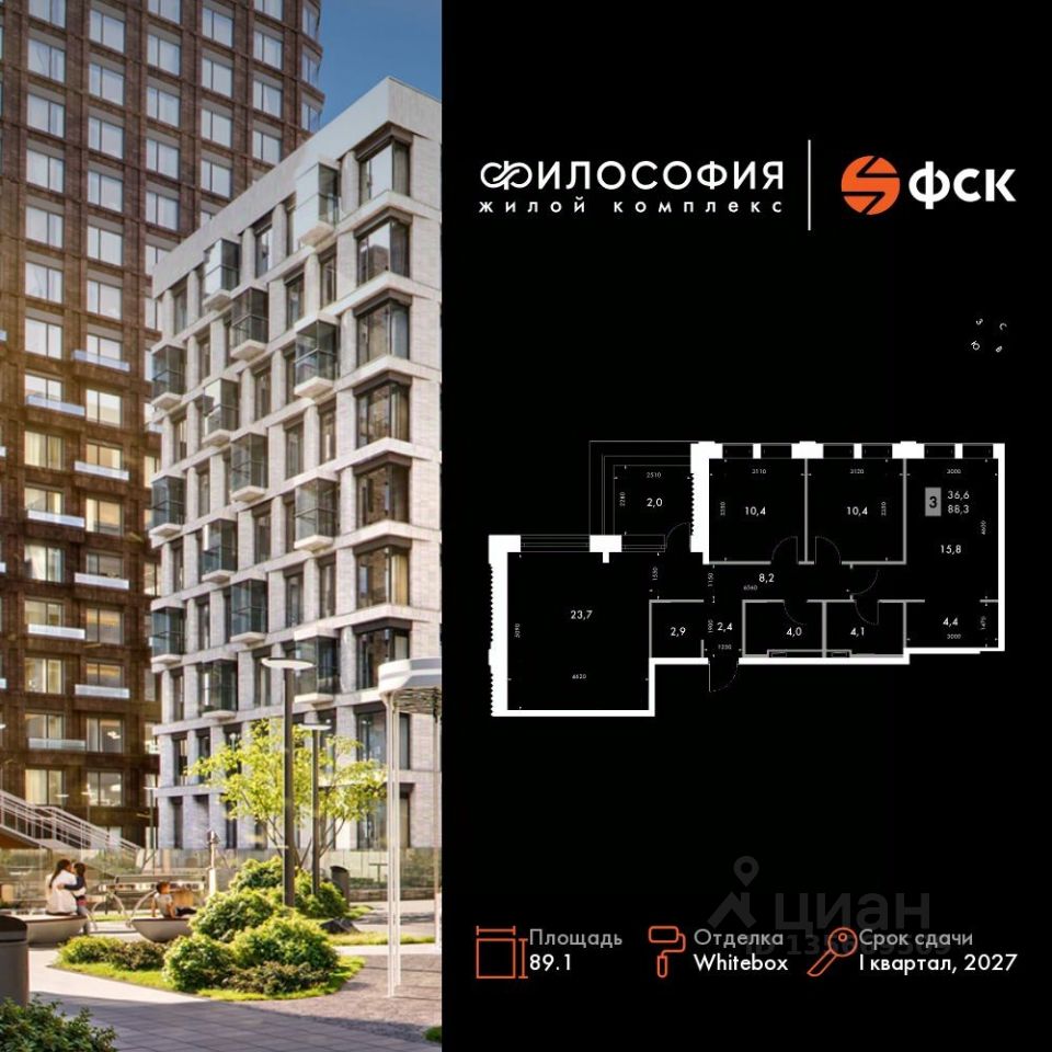 Продаётся 4-к квартира номер 217 общей площадью 89.1 кв.м. на 13-м этаже 14 этажного здания. Отделка Whitebox. Цена с учётом скидки.