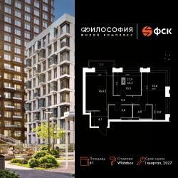 Продаётся 2-к квартира номер 269 общей площадью 61 кв.м. на 7-м этаже 23 этажного здания. Отделка Whitebox. Цена с учётом скидки.