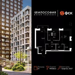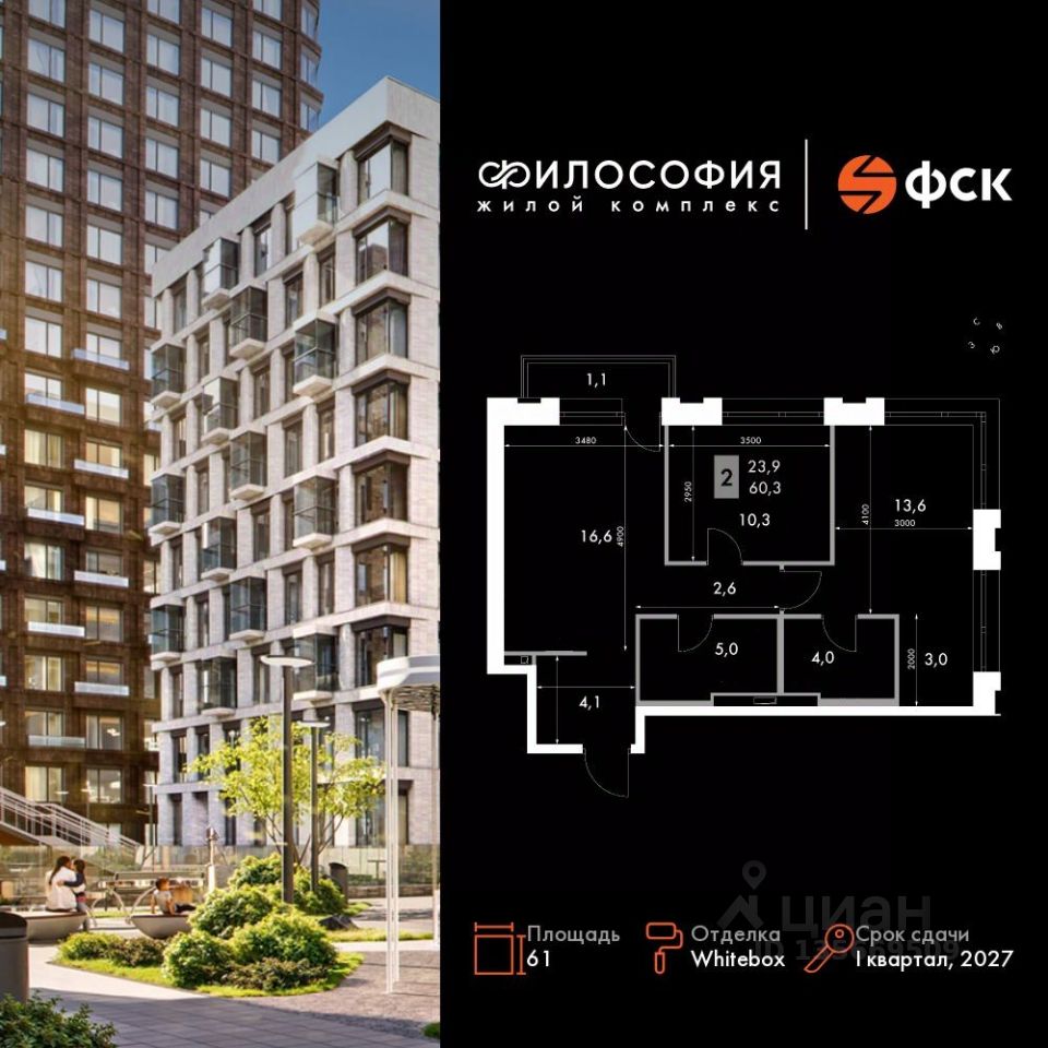 Продаётся 2-к квартира номер 287 общей площадью 61 кв.м. на 9-м этаже 23 этажного здания. Отделка Whitebox. Цена с учётом скидки.