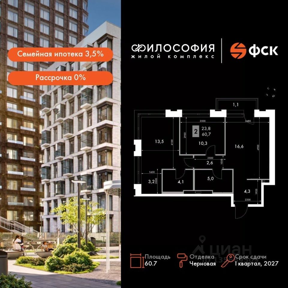 Продаётся 2-к квартира номер 319 общей площадью 60.7 кв.м. на 12-м этаже 23 этажного дома. Отделка Whitebox. Цена с учётом скидки!