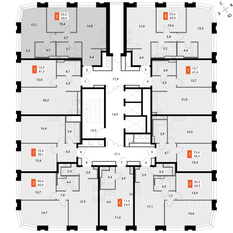 Продаётся 2-к квартира номер 349 общей площадью 59.1 кв.м. на 16-м этаже 23 этажного здания. Отделка Whitebox. Цена с учётом скидки.
