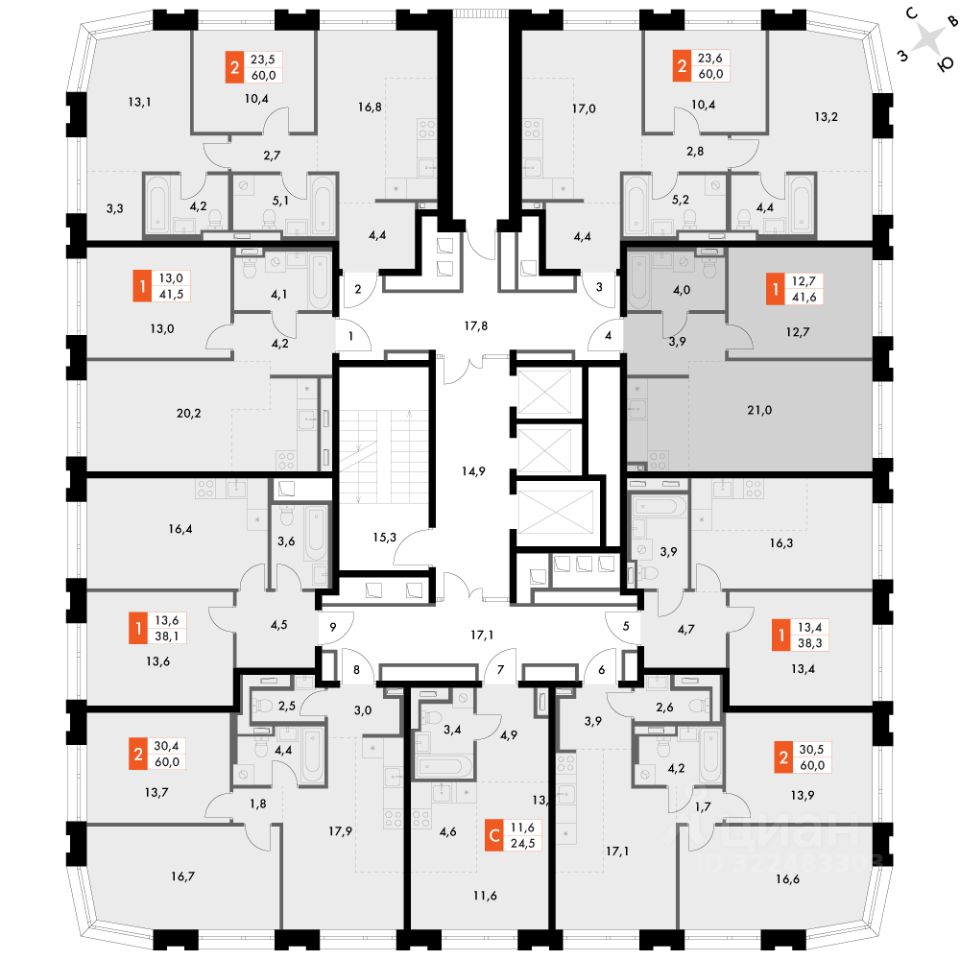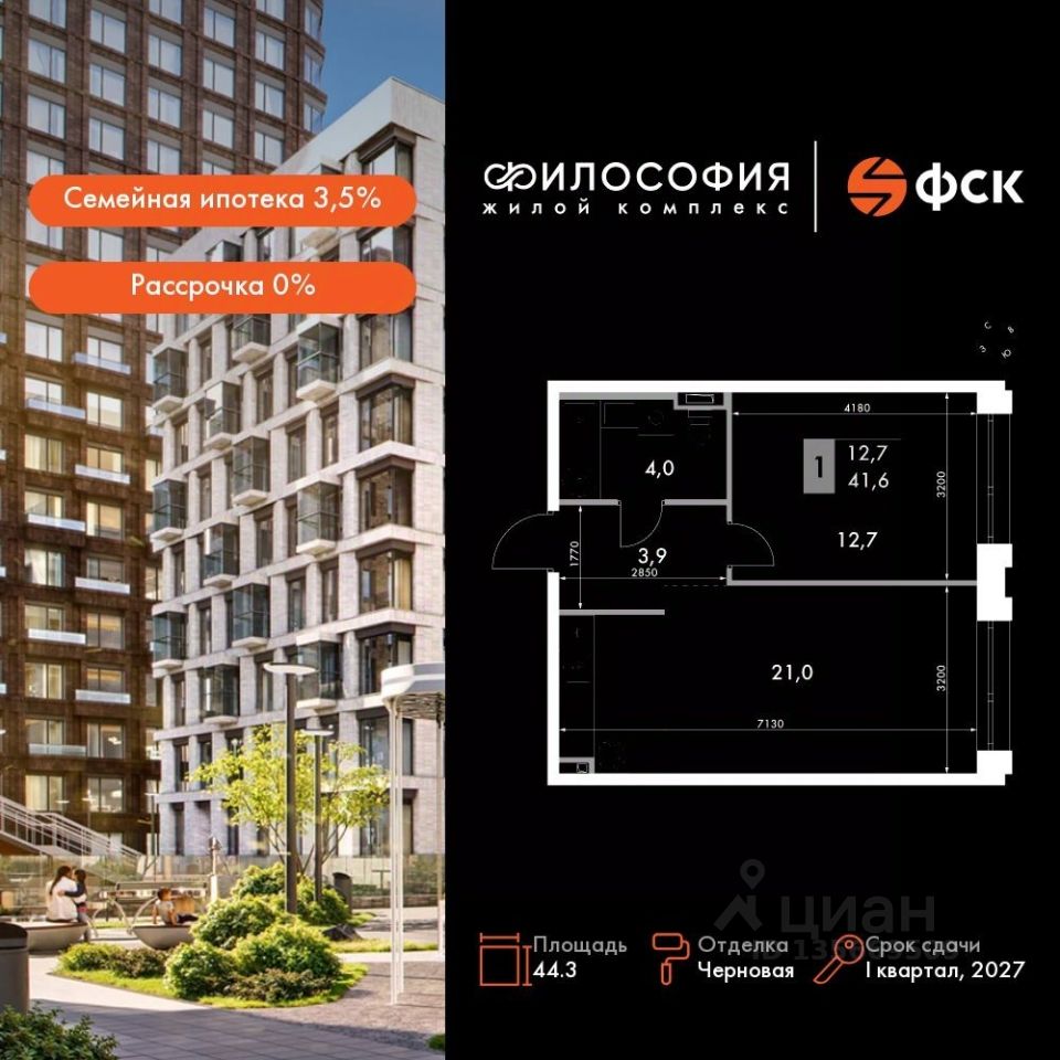 Продаётся 2-к квартира номер 351 общей площадью 44.3 кв.м. на 16-м этаже 23 этажного дома. Отделка Whitebox. Цена с учётом скидки!