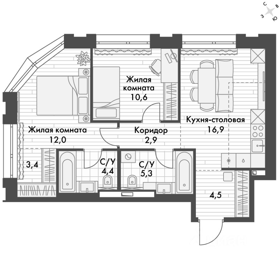 - Угловая планировка - больше пространства для ваших идей.