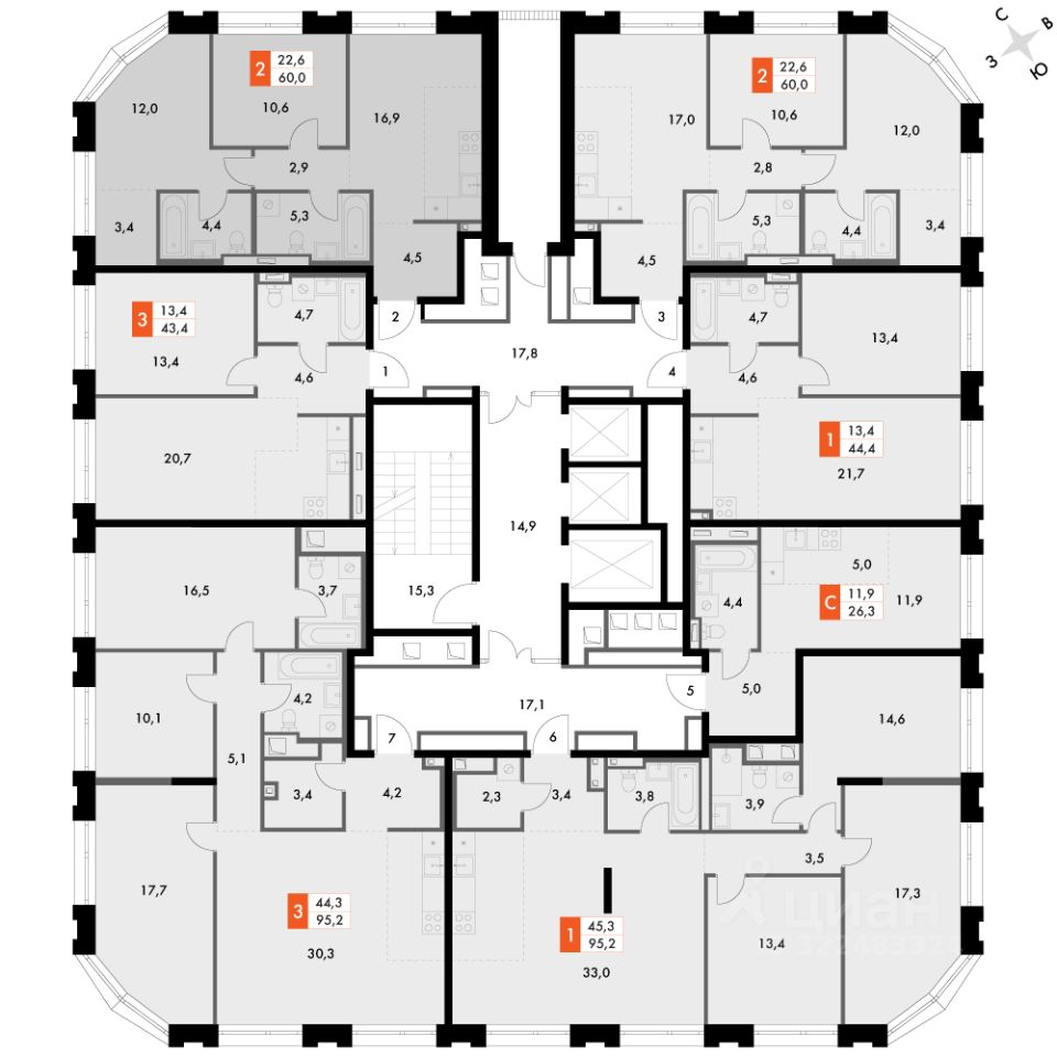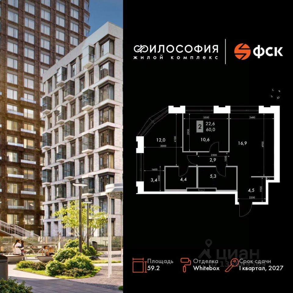 Продаётся 2-к квартира номер 393 общей площадью 59.2 кв.м. на 22-м этаже 23 этажного здания. Отделка Whitebox. Цена с учётом скидки.