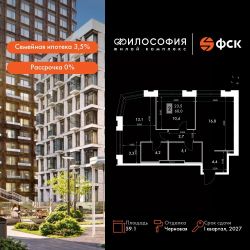 Продаётся 2-к квартира номер 394 общей площадью 59.1 кв.м. на 22-м этаже 23 этажного дома. Отделка Whitebox. Цена с учётом скидки!