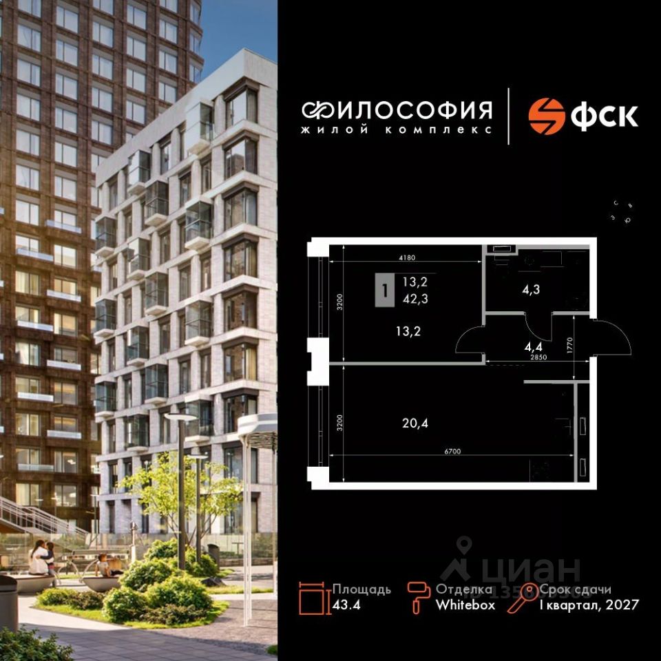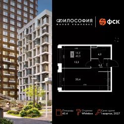 Продаётся 2-к квартира номер 330 общей площадью 43.4 кв.м. на 14-м этаже 23 этажного здания. Отделка Whitebox. Цена с учётом скидки.