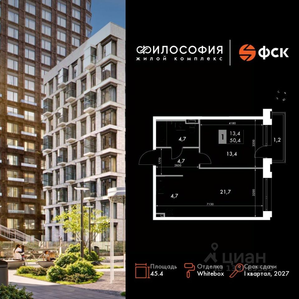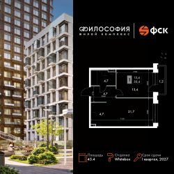 Продаётся 2-к квартира номер 243 общей площадью 45.4 кв.м. на 4-м этаже 23 этажного здания. Отделка Whitebox. Цена с учётом скидки.