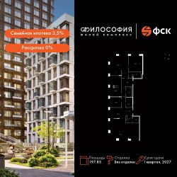 Продаётся 4-к квартира номер 400 общей площадью 197.85 кв.м. на 23-м этаже 23 этажного дома. Без отделки. Цена с учётом скидки!