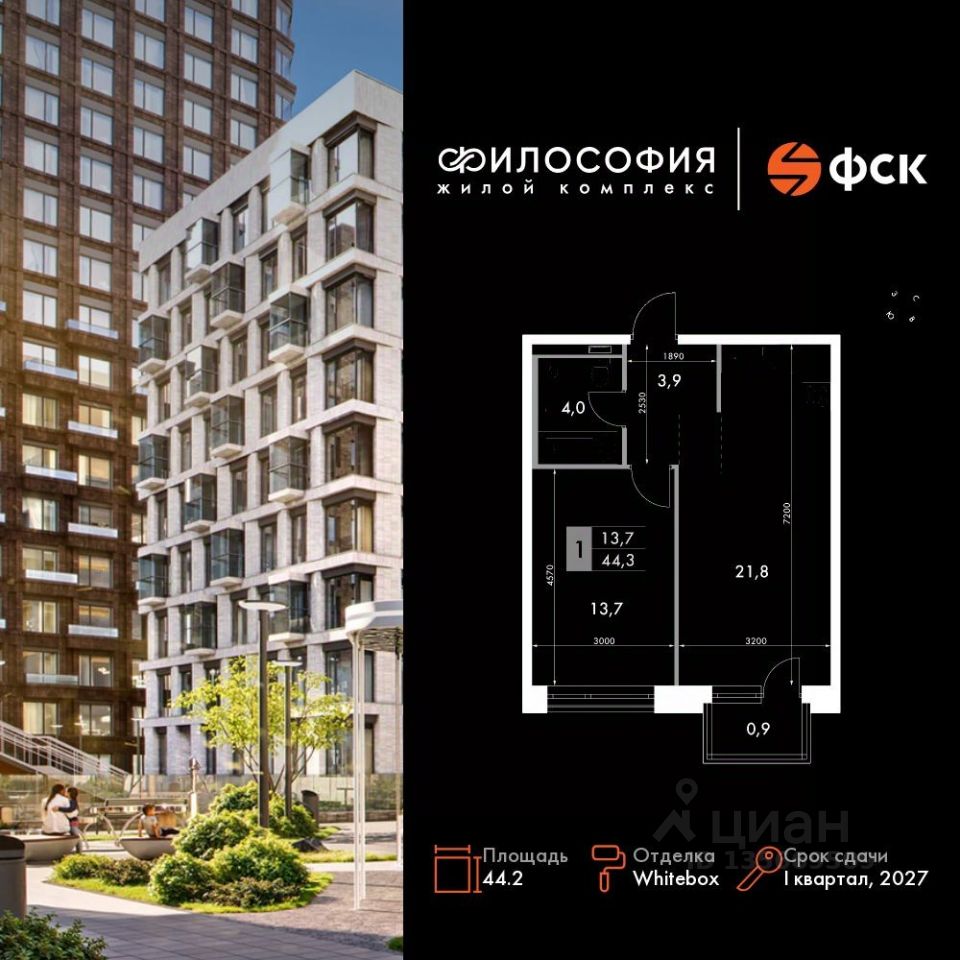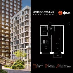 Продаётся 2-к квартира номер 70 общей площадью 44.2 кв.м. на 9-м этаже 14 этажного здания. Отделка Whitebox. Цена с учётом скидки.