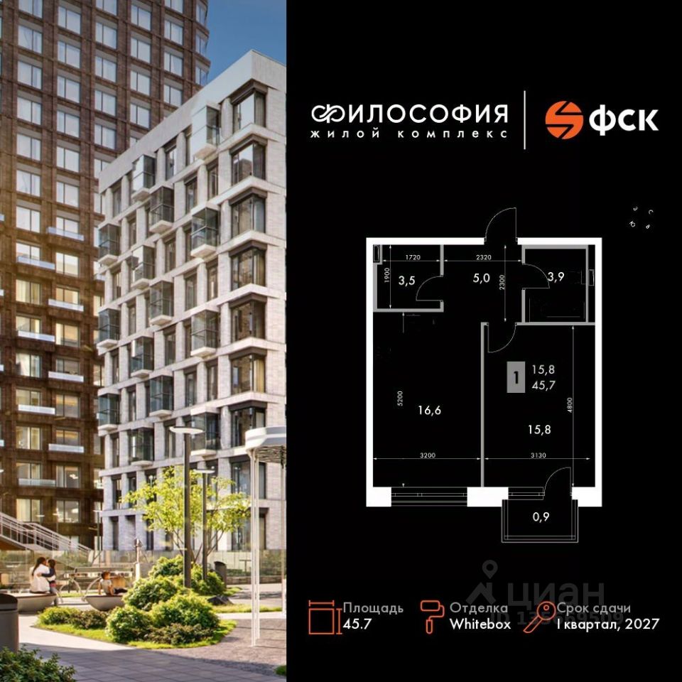 Продаётся 2-к квартира номер 71 общей площадью 45.7 кв.м. на 9-м этаже 14 этажного здания. Отделка Whitebox. Цена с учётом скидки.