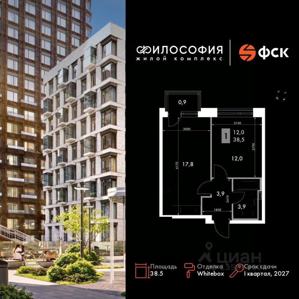 Продаётся 2-к квартира номер 1 общей площадью 38.5 кв.м. на 3-м этаже 14 этажного здания. Отделка Whitebox. Цена с учётом скидки.
