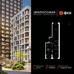 Продаётся 2-к квартира номер 3 общей площадью 73.2 кв.м. на 3-м этаже 14 этажного здания. Отделка Whitebox. Цена с учётом скидки.