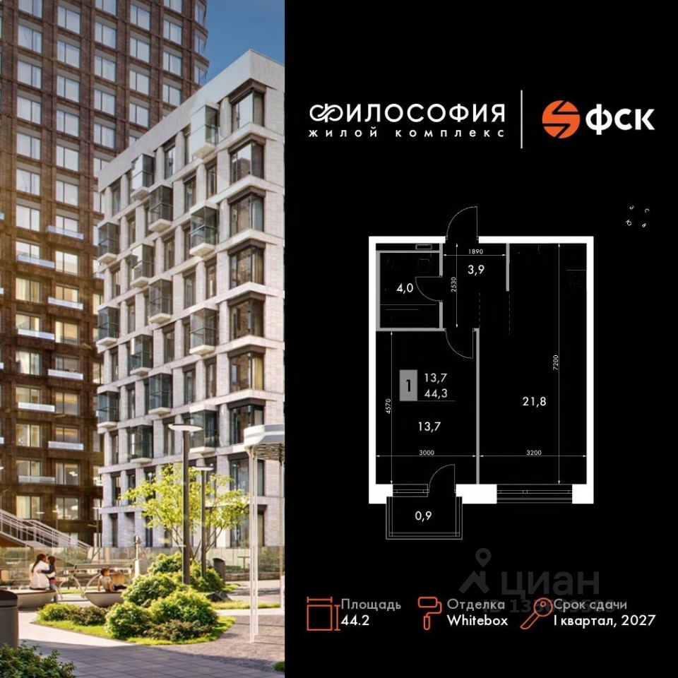 Продаётся 2-к квартира номер 37 общей площадью 44.2 кв.м. на 6-м этаже 14 этажного здания. Отделка Whitebox. Цена с учётом скидки.