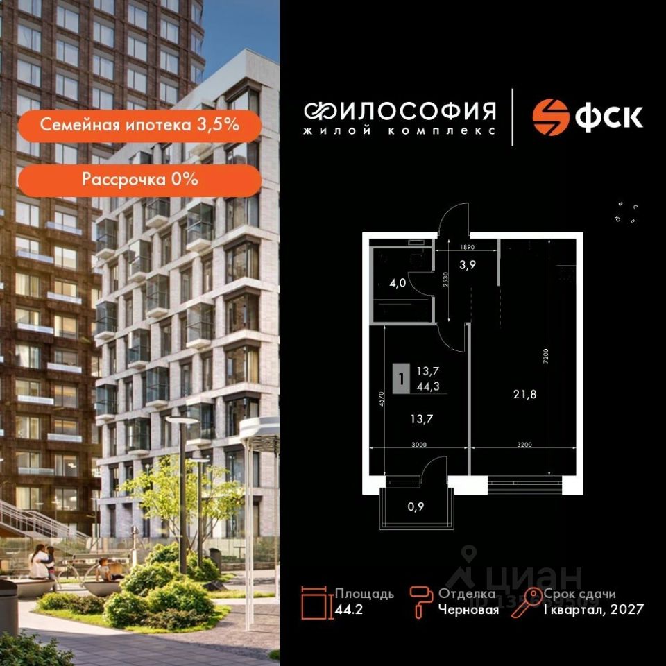 Продаётся 2-к квартира номер 81 общей площадью 44.2 кв.м. на 10-м этаже 14 этажного дома. Отделка Whitebox. Цена с учётом скидки!