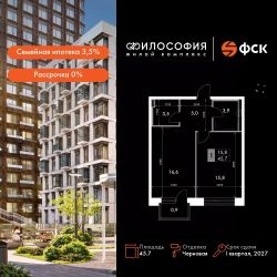 Продаётся 2-к квартира номер 83 общей площадью 45.7 кв.м. на 10-м этаже 14 этажного дома. Отделка Whitebox. Цена с учётом скидки!