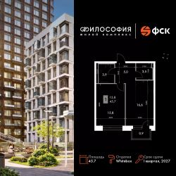 Продаётся 2-к квартира номер 94 общей площадью 45.7 кв.м. на 11-м этаже 14 этажного здания. Отделка Whitebox. Цена с учётом скидки.