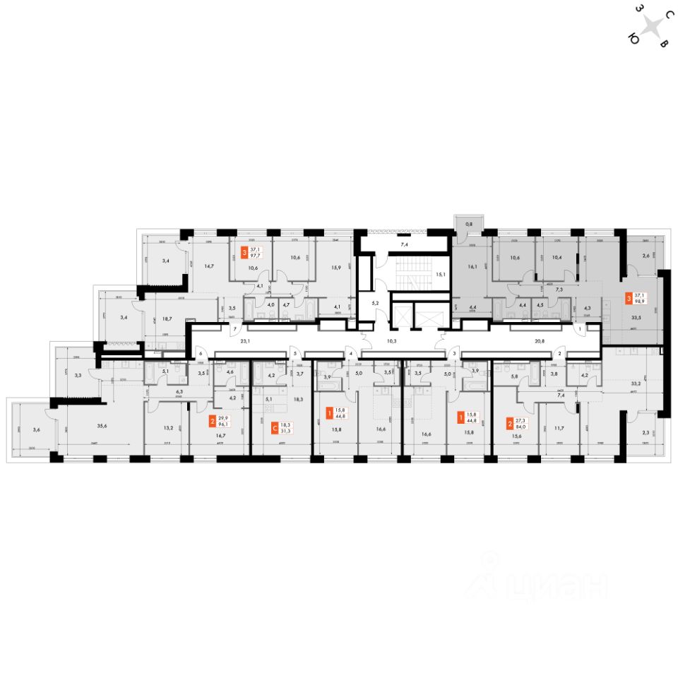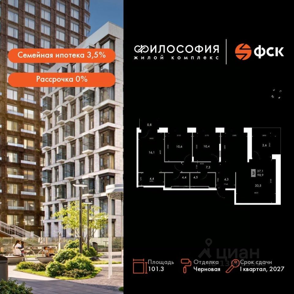 Продаётся 4-к квартира номер 109 общей площадью 101.3 кв.м. на 13-м этаже 14 этажного дома. Отделка Whitebox. Цена с учётом скидки!
