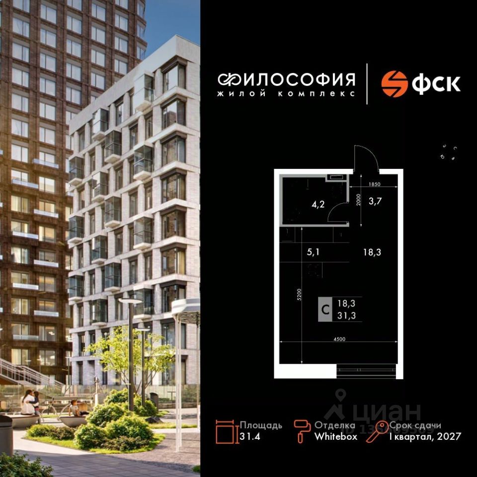 Продаётся квартира-студия номер 113 общей площадью 31.4 кв.м. на 13-м этаже 14 этажного здания. Отделка Whitebox. Цена с учётом скидки.