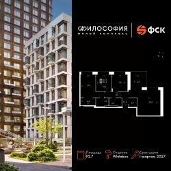 Продаётся 3-к квартира номер 116 общей площадью 92.7 кв.м. на 14-м этаже 14 этажного здания. Отделка Whitebox. Цена с учётом скидки.