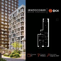 Продаётся 2-к квартира номер 14 общей площадью 74 кв.м. на 4-м этаже 14 этажного здания. Отделка Whitebox. Цена с учётом скидки.