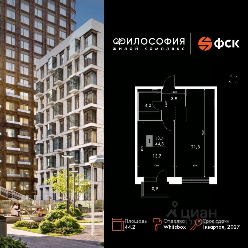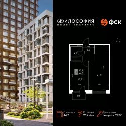 Продаётся 2-к квартира номер 15 общей площадью 44.2 кв.м. на 4-м этаже 14 этажного здания. Отделка Whitebox. Цена с учётом скидки.
