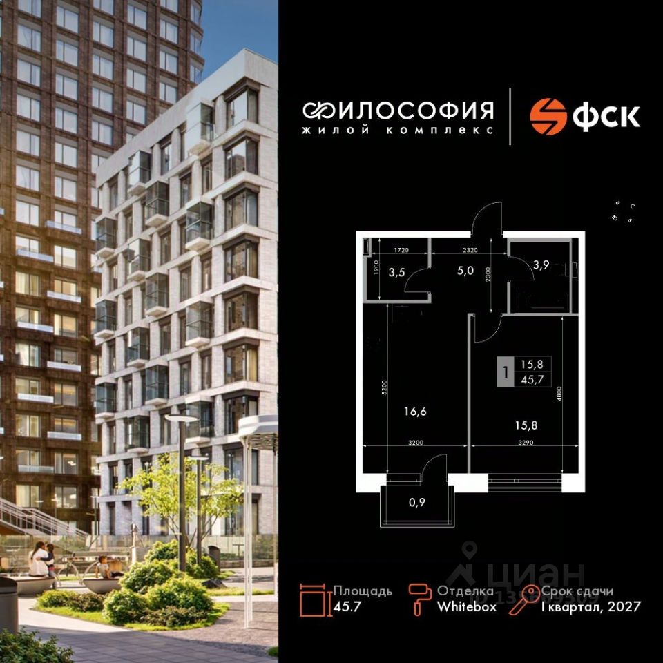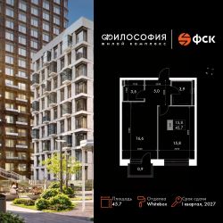Продаётся 2-к квартира номер 16 общей площадью 45.7 кв.м. на 4-м этаже 14 этажного здания. Отделка Whitebox. Цена с учётом скидки.