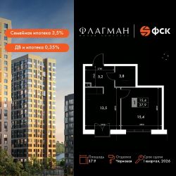 Продаётся 1-к квартира номер 517 общей площадью 37.9 кв.м. на 21-м этаже 22 этажного дома. Отделка Whitebox. Цена с учётом скидки!