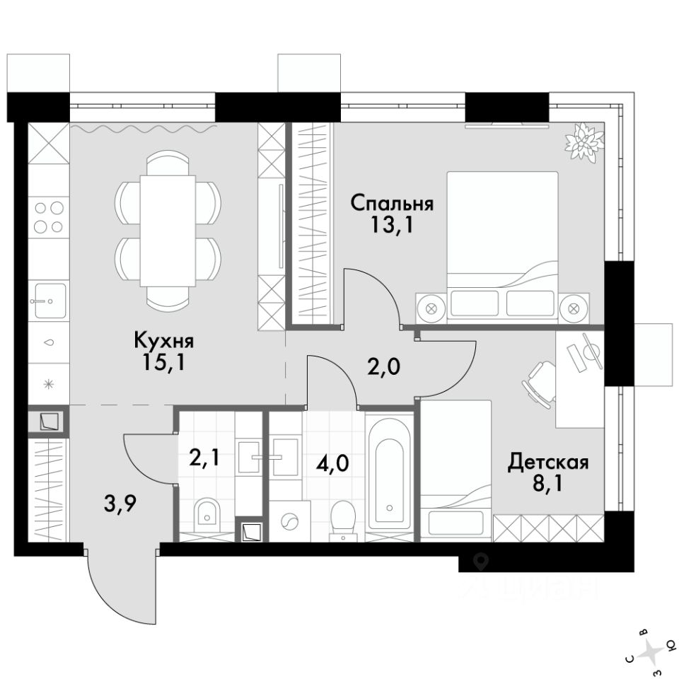 - Угловая планировка - больше пространства для ваших идей.
