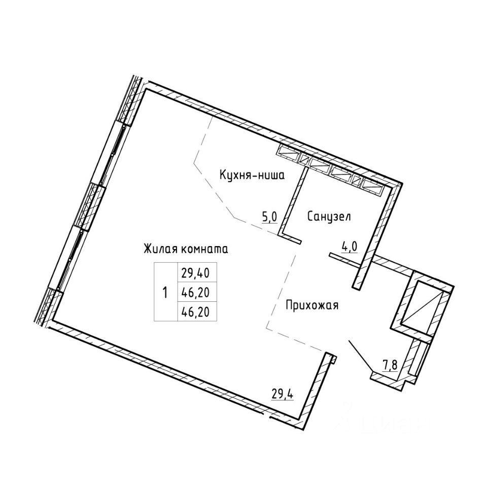 1-комн. квартира, 46,2 м²