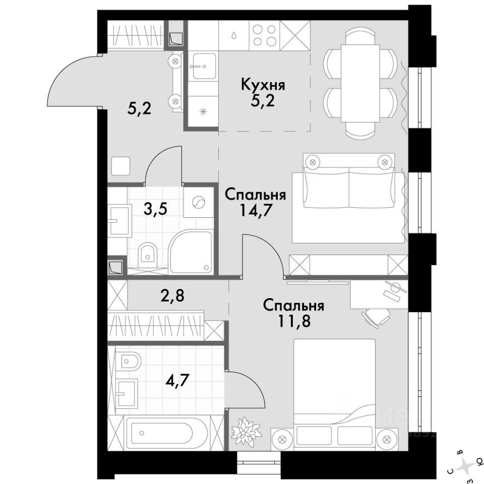 - Мастер-зона с санузлом и гардеробной. Всё для вашего комфорта и удобства, включая личный санузел и гардероб.